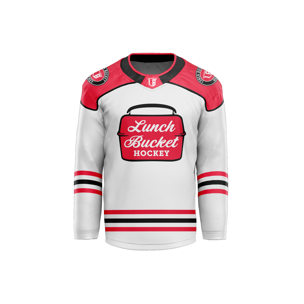 These Lunch Bucket Hockey jerseys are fully sublimated. With sublimation the print will not peel, crack, or fade.