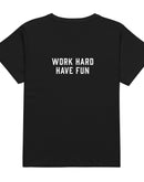 Made of 100% combed and ring-spun cotton, this t-shirt is ultra soft and smooth against the skin. With its flattering, longline fit and crew neck, this tee will look best paired with high-waisted bottoms.