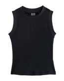 - Ribbed detailing at neck and armholes